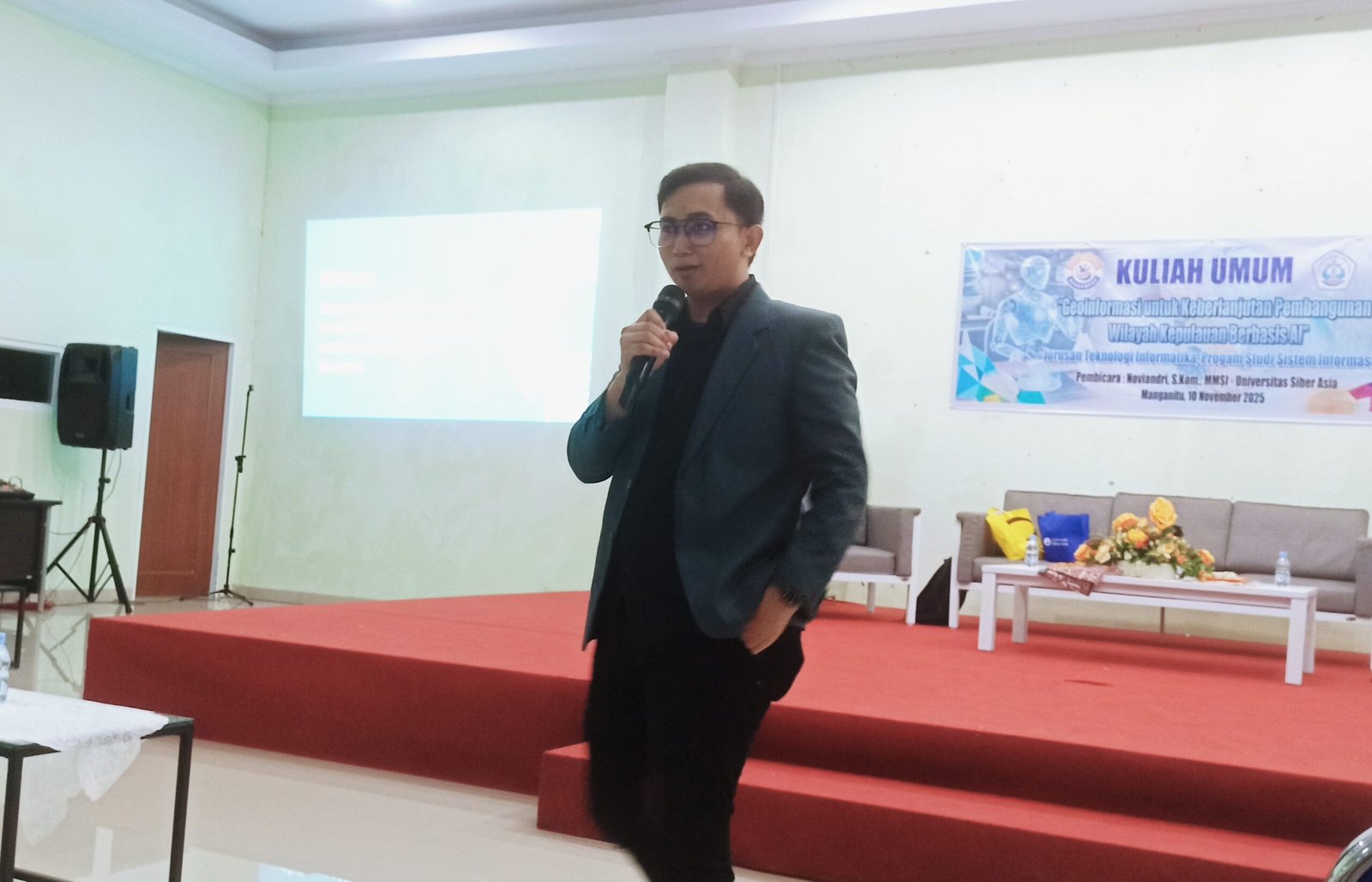 Kuliah umum digelar pada 10 November 2025 di Auditorium Kampus Manganitu. Kegiatan ini diselenggarakan oleh Jurusan Teknologi Informatika, Program Studi Sistem Informasi POLNUSTAR. Acara dibuka oleh Wakil Direktur Bidang Akademik dan Kemahasiswaan, Bapak Jefri A. Mendeno, S.Pi., M.Si. Suasana terasa hangat. Mahasiswa, dosen, dan jajaran pimpinan kampus menyambut dengan sangat bersahabat. Saya hadir membawa nama UNSIA, tetapi yang saya rasakan adalah ruang kolaborasi dan belajar bersama.