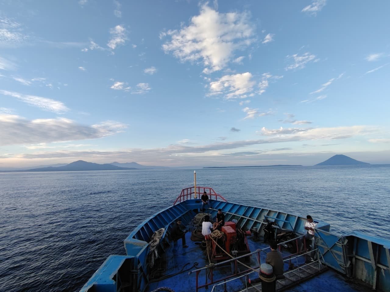 Dari Jakarta, saya terbang menuju Manado sekitar 3 jam 25 menit. Setibanya di Manado, perjalanan berlanjut lewat laut. Dari Pelabuhan Manado, saya naik kapal menuju Pelabuhan Tahuna di Sangihe, dengan waktu tempuh kurang lebih 9 jam. Kapal berangkat pukul 19.00 WITA dan tiba sekitar pukul 04.30 WITA. Perjalanan malam di atas laut dengan cuaca akhir tahun yang menantang menjadi pengalaman yang sangat berkesan. Di satu sisi melelahkan, tetapi di sisi lain mengingatkan bahwa akses pendidikan berkualitas untuk wilayah kepulauan memang layak diperjuangkan.